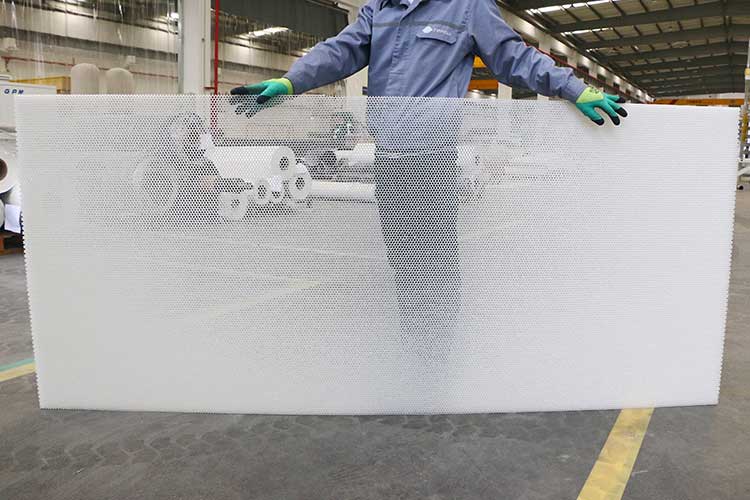 Polypropylene (PP) is a thermoplastic polymer made from propylene through the polymerization reaction. The cells of polypropylene (PP) honeycomb core are mainly round, and they are fused together rather than glued together. These cells join together to form a stable structure. The density of the honeycomb core changes with the change of cell size. The smaller the cell size, the higher the density and strength.